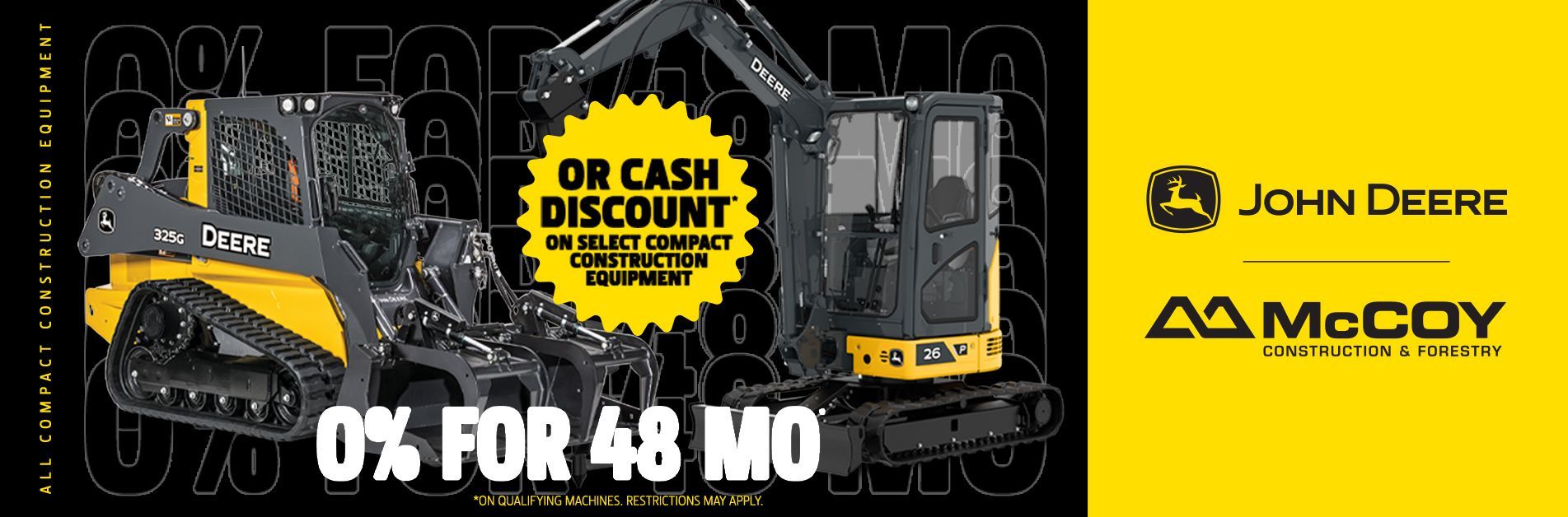0% FOR 48 MONTHS* OR CASH DISCOUNT* ON QUALIFYING COMPACT CONSTRUCTION EQUIPMENT